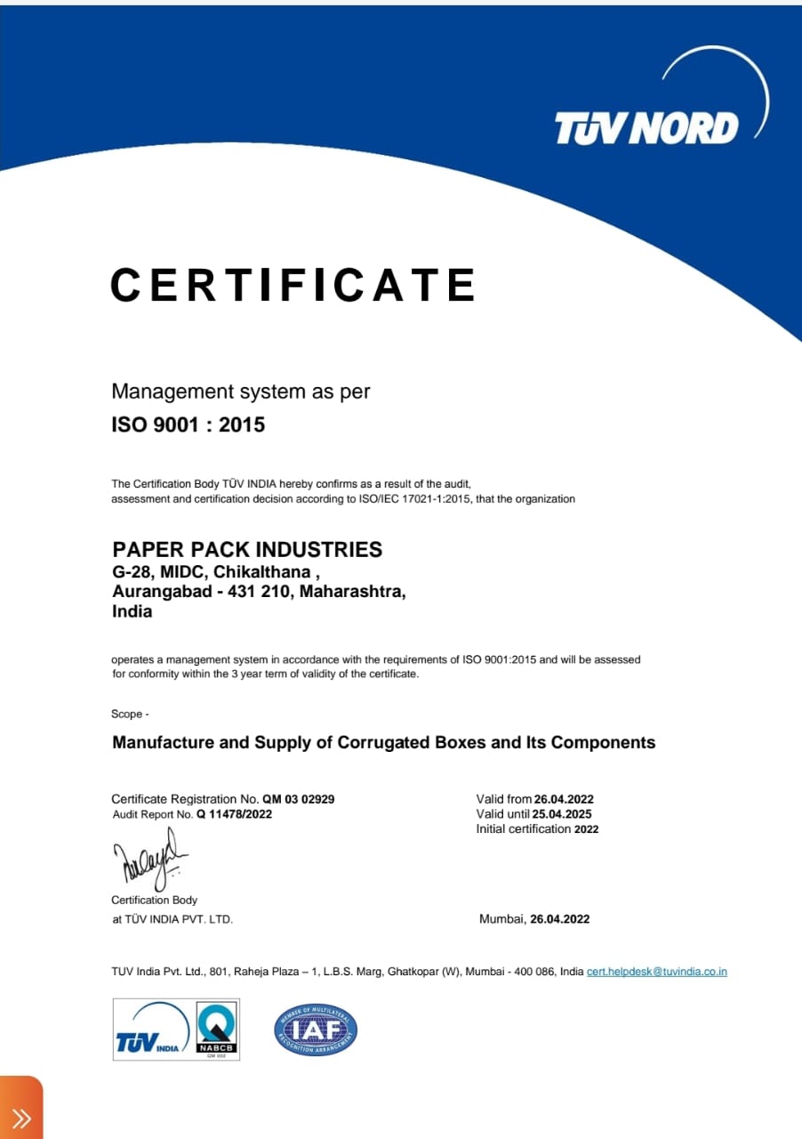 At Paper Pack Industries, we are committed to delivering high-quality infrastructure solutions to our clients. Our ISO 9001:2015 certification is a testament to our commitment to quality and customer satisfaction.